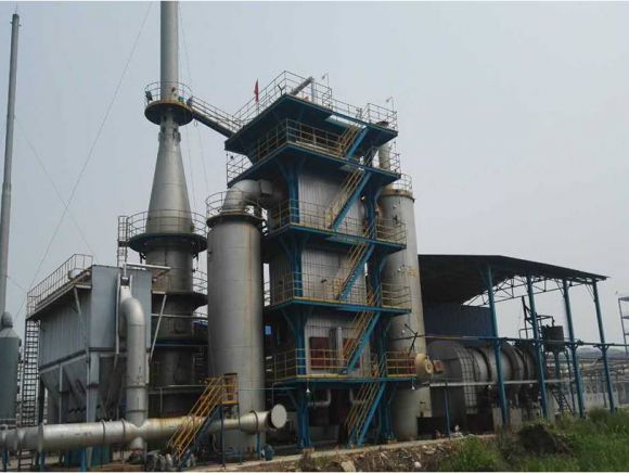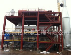 采用重油、廢溶劑為加熱介質(zhì)。將在流化造粒塔生成的含有機(jī)物的混合污鹽加入回轉(zhuǎn)焙燒爐內(nèi)焙燒。在高溫下污鹽中的有機(jī)物氣化熱解。焙燒后的無機(jī)鹽外送綜合利用或填埋。焙燒產(chǎn)生的煙氣經(jīng)焚燒爐二次焚燒,將煙氣中有機(jī)物完全氧化成CO2、H2O、HCl、S